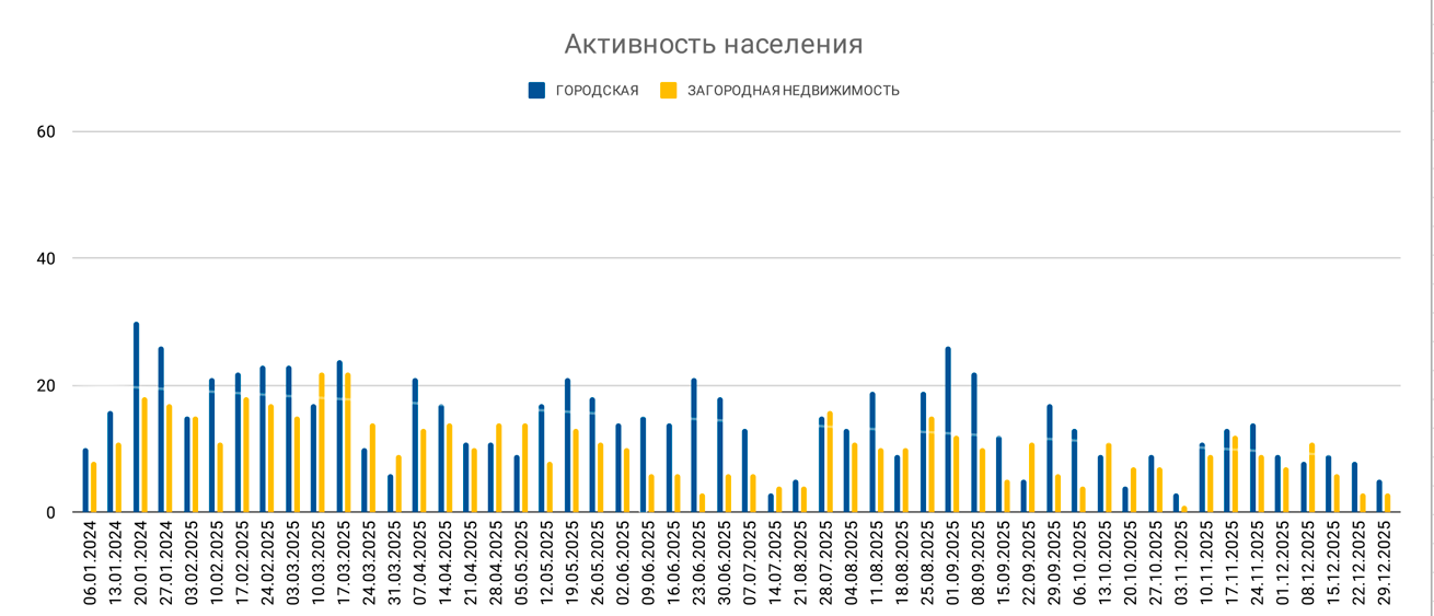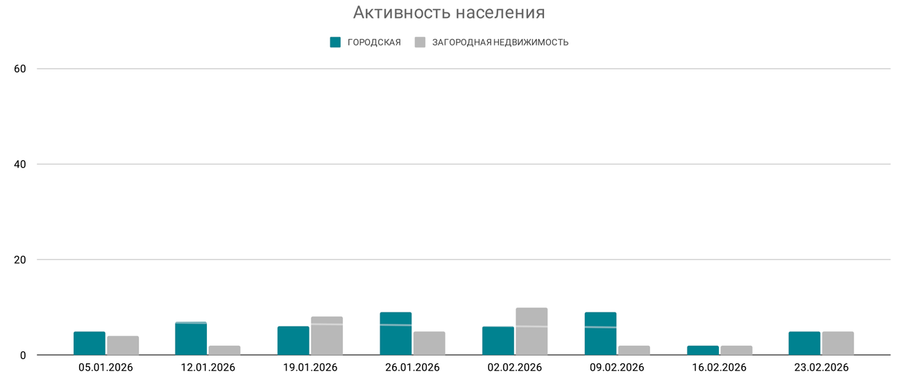 Аналитический отдел агентства ВСП предлагает вам графики активности населения, построенные на данных еженедельных опросов клиентов, обращающихся к нам и агентов, работающих с ними. Мы рассчитываем коэффициент активности по формуле, в которую входят такие данные как количество сделок, задатков, подписанных договоров, проведенных показов, поступивших заявок через колл-центр и онлайн, а так же иные данные.